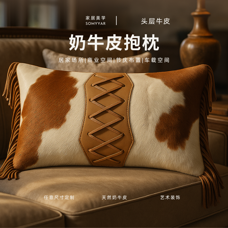舒米雅奶牛皮拼接大抱枕沙发靠垫舒米雅客厅棕白色靠背枕靠垫组合