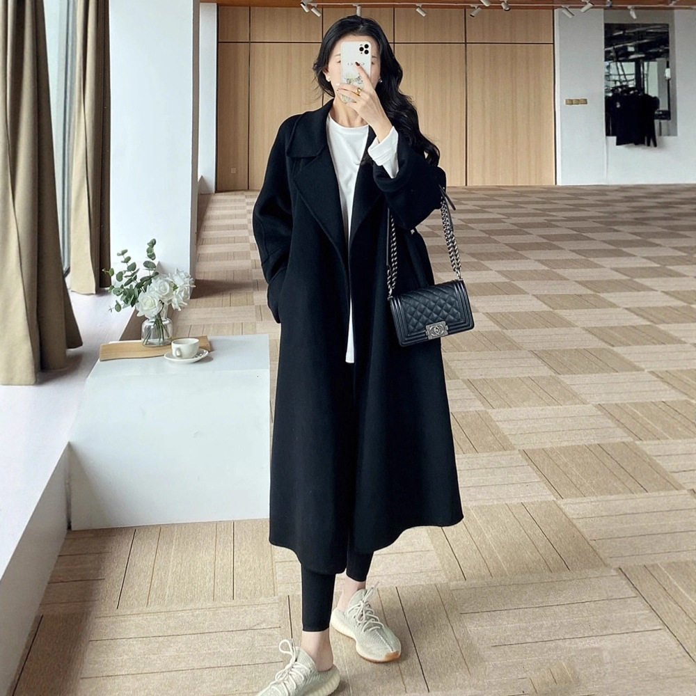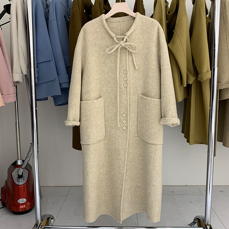 - 宽松双面羊绒大衣女