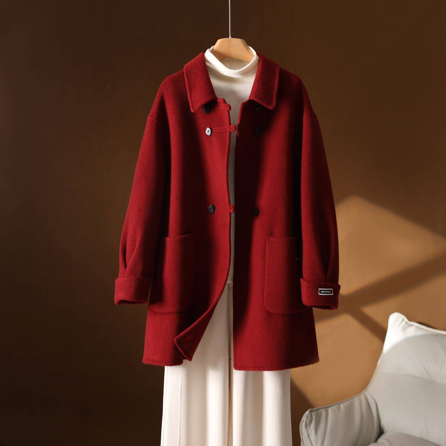 - 双面绒羊绒大衣女