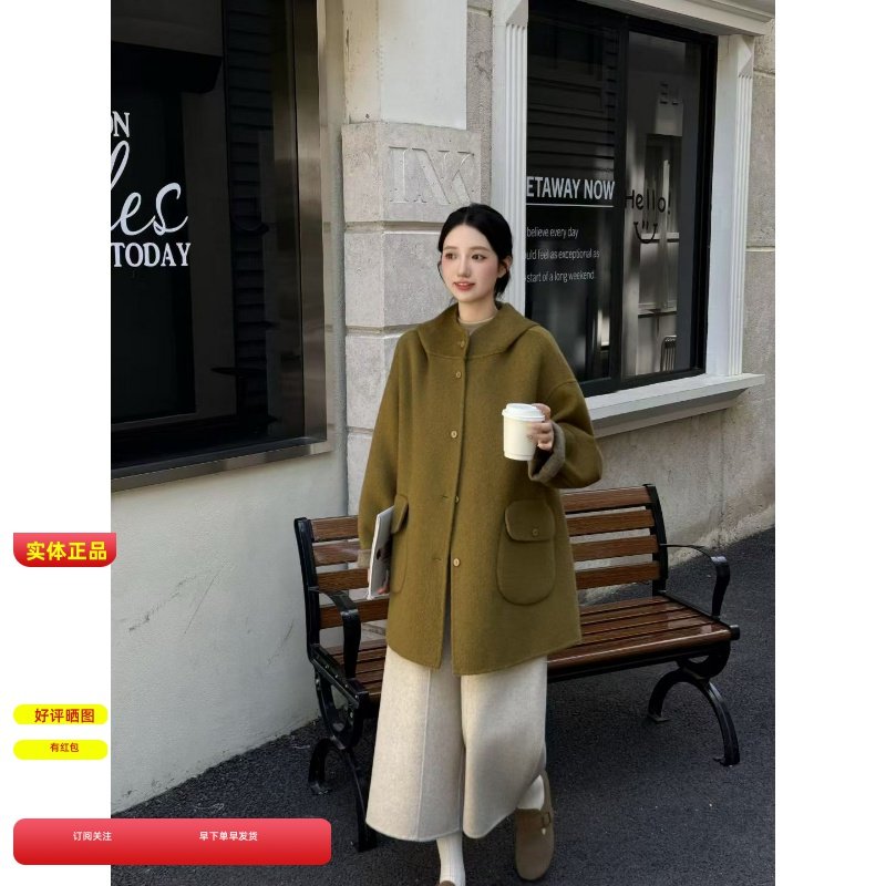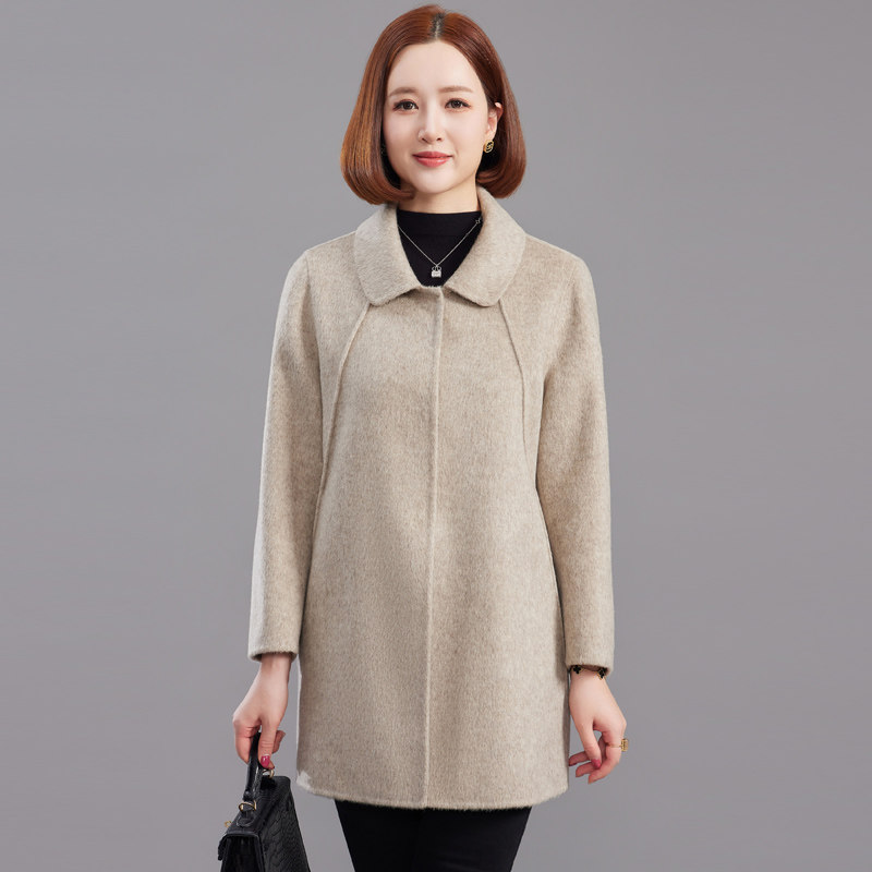 - 双面绒大衣女中长款女