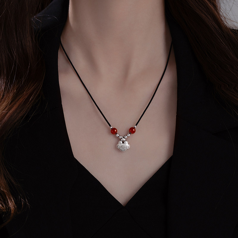 古法如意平安锁项链时尚高级感镂空锁长命锁大小号时尚饰品锁骨链