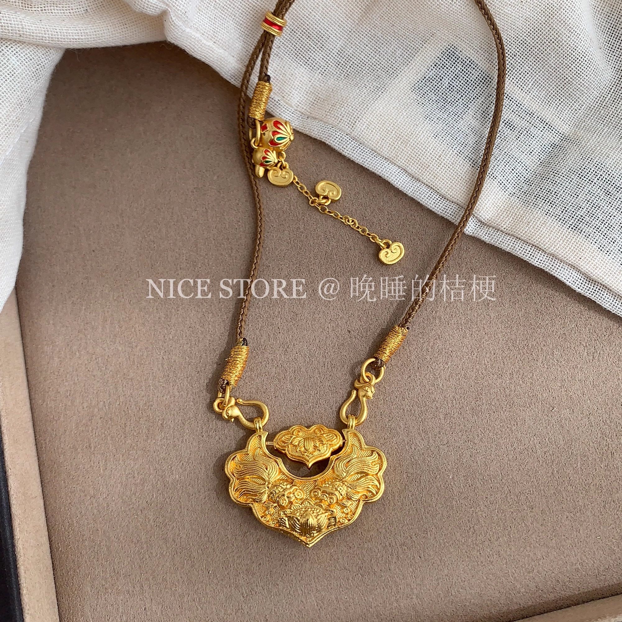 晚睡的桔梗「渔也」新中式沙金双鱼锦鲤长命锁葫芦项链长款毛衣链