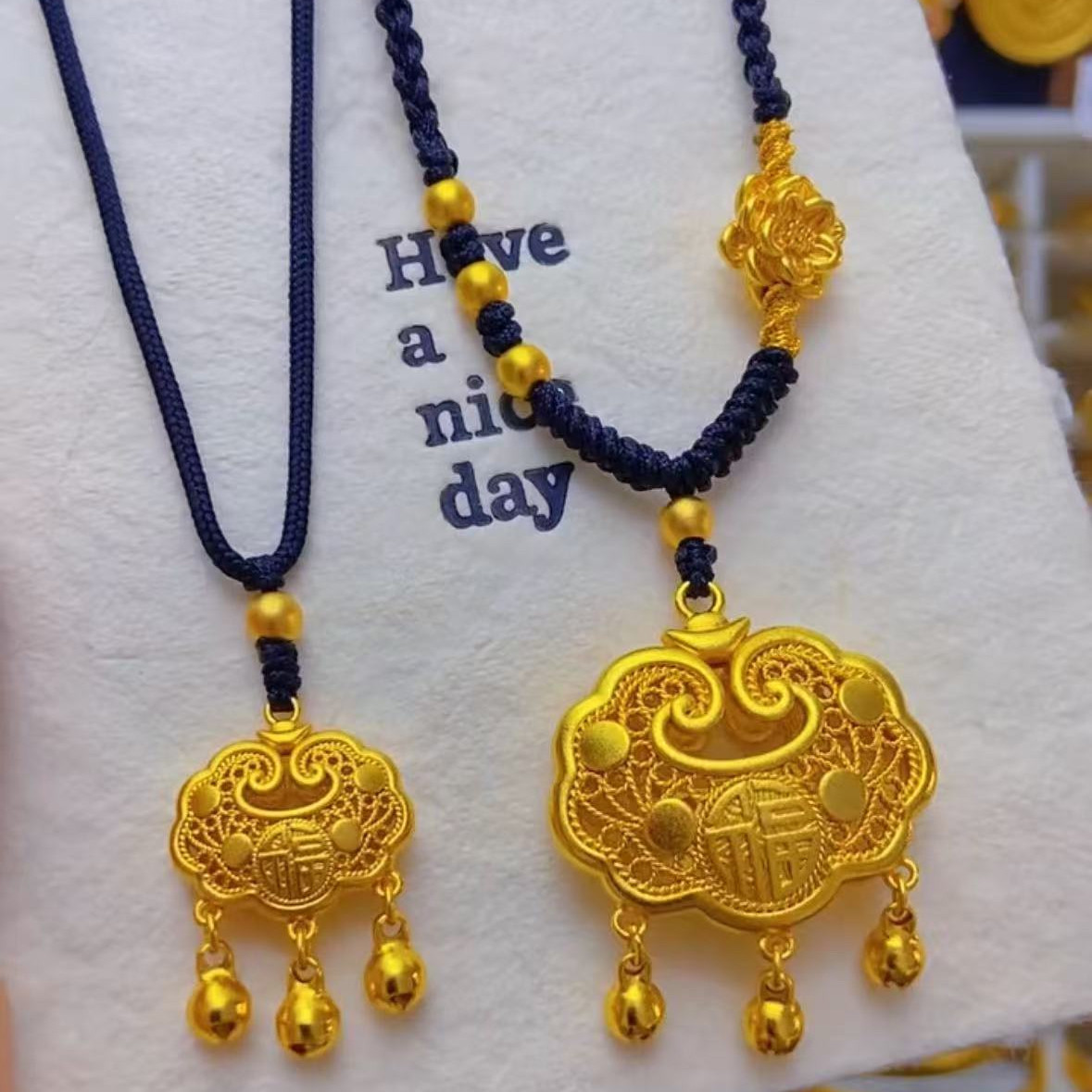 水贝黄金店同款金包银古法福字平安锁吊坠女如意长命锁项链送女友