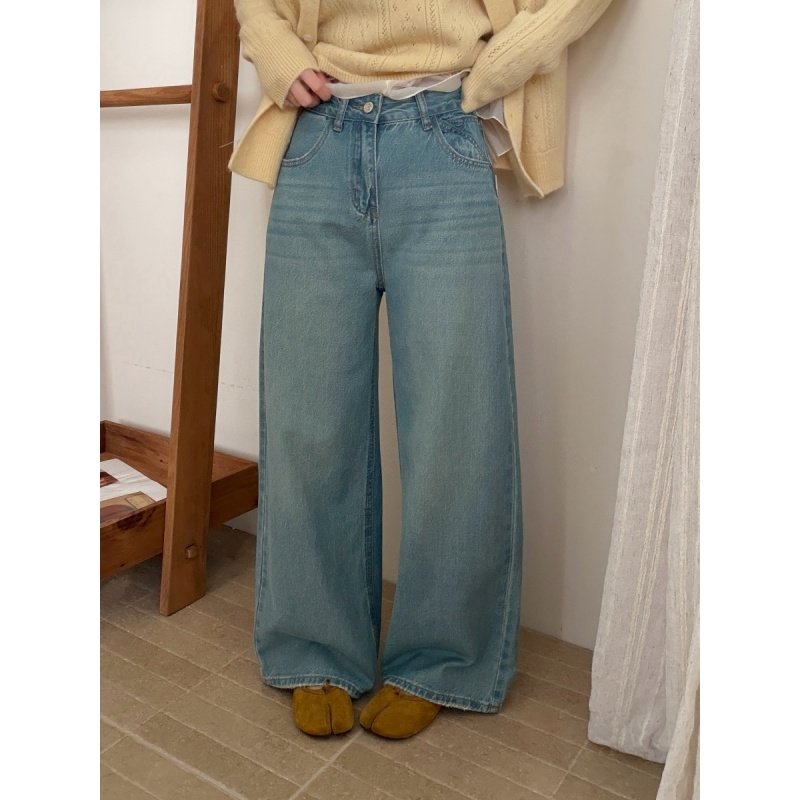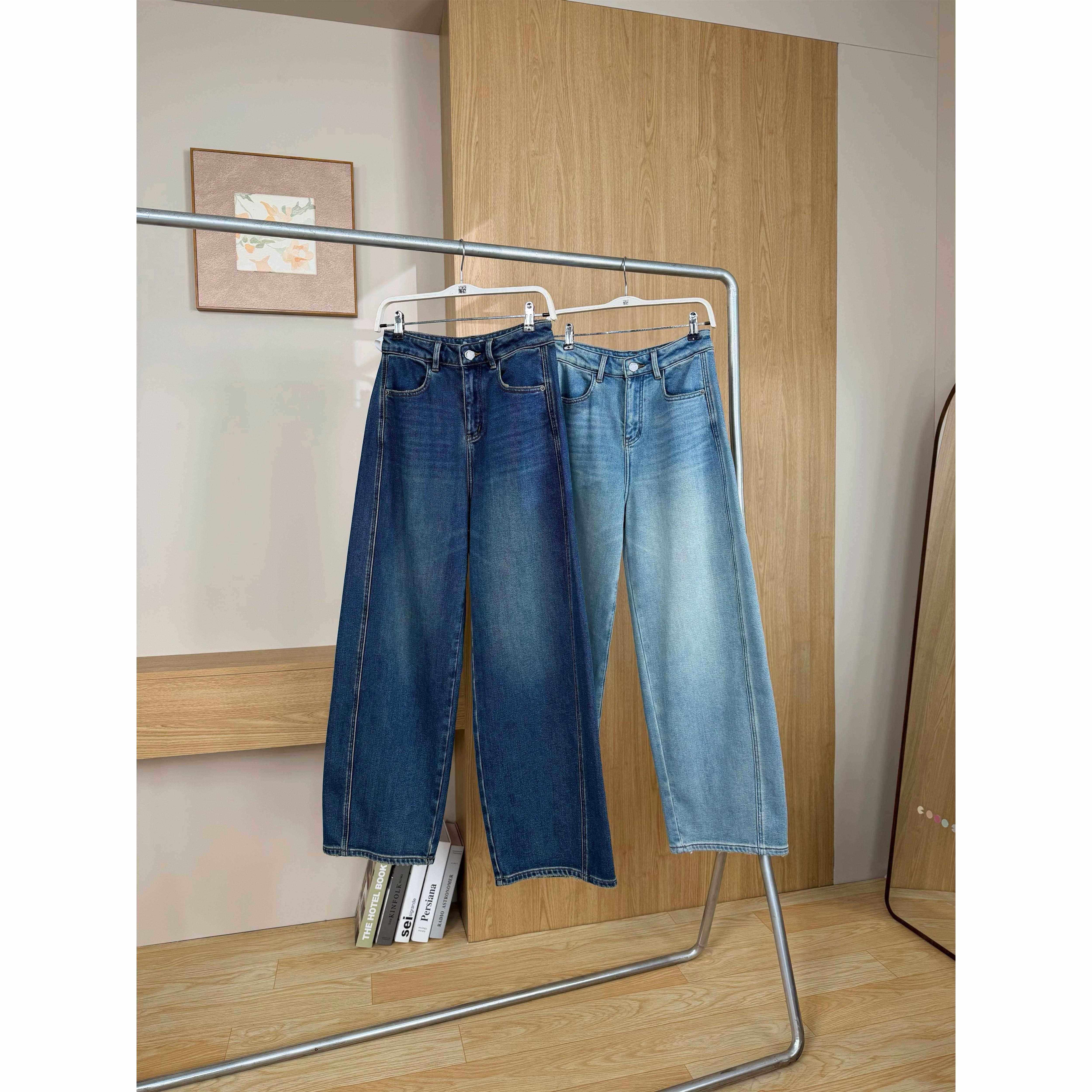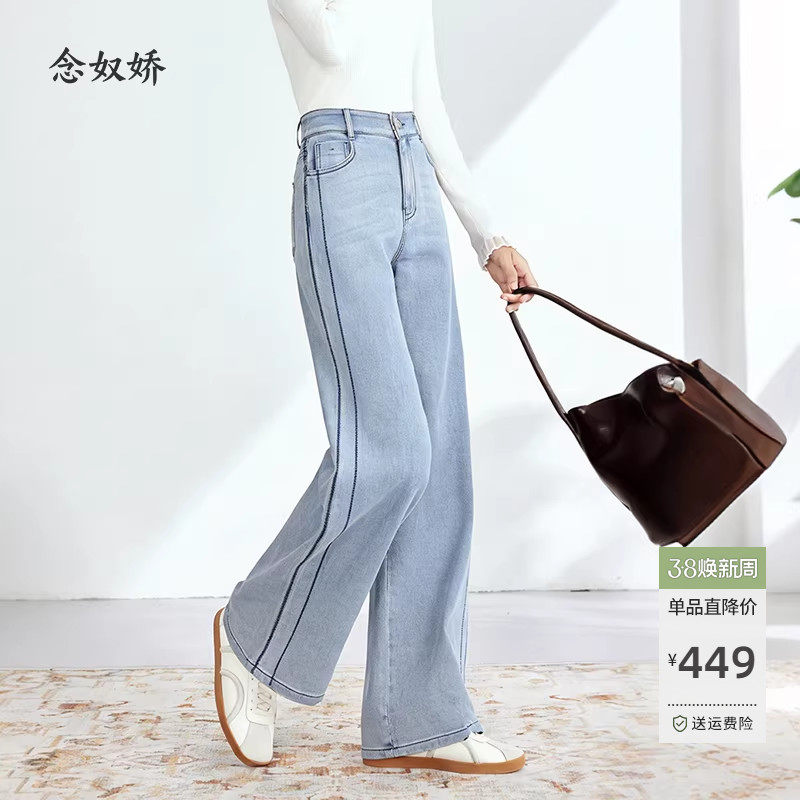 2025年新款高腰显瘦秋季直筒裤子覆古浅蓝色窄版阔腿牛仔裤女长裤
