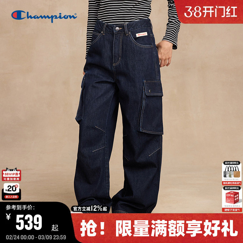 小鬼王琳凯同款Champion冠军牛仔裤女2026春季工装风休闲阔腿长裤