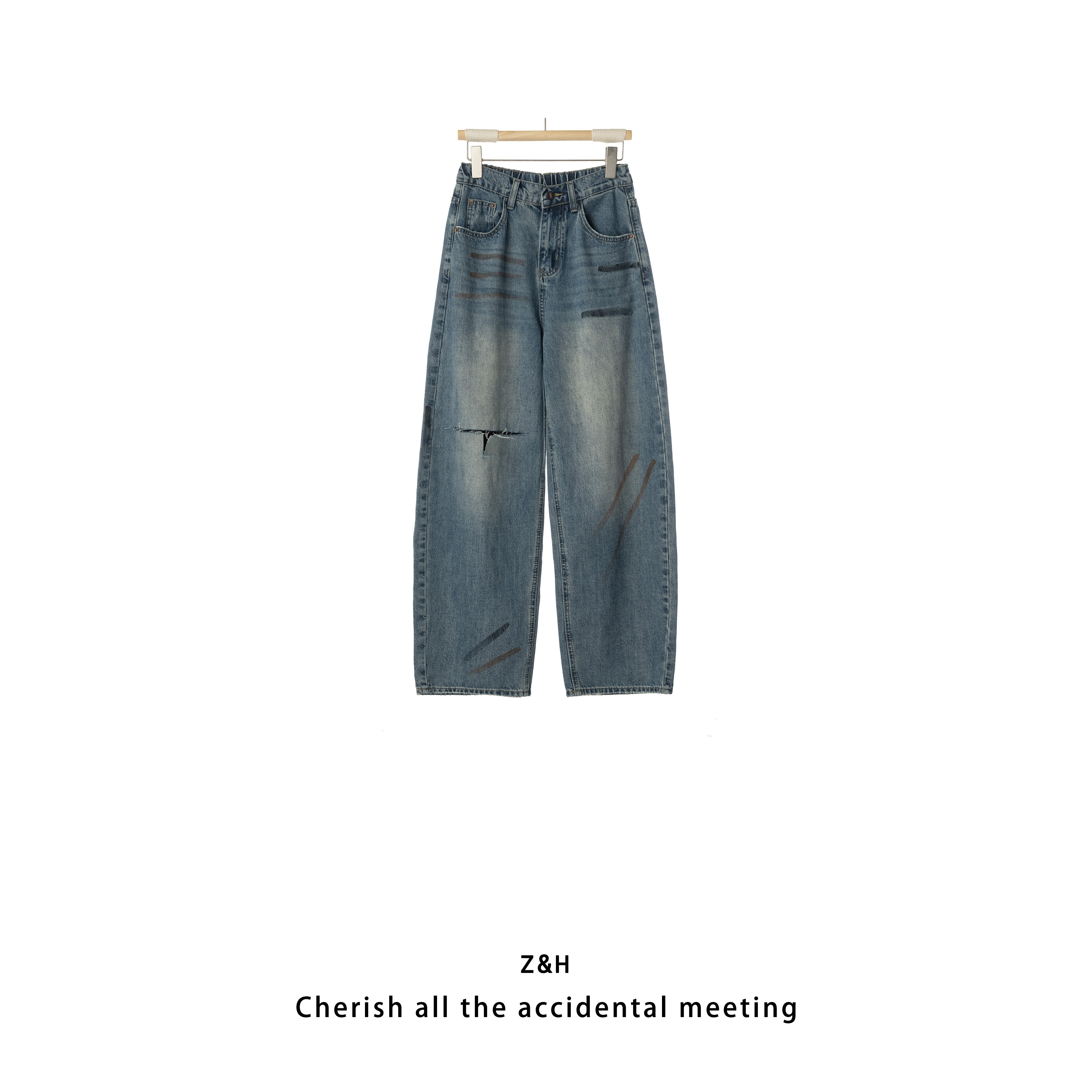wana try松弛感廓形牛仔裤春夏新品浅蓝百搭时髦休闲长裤女