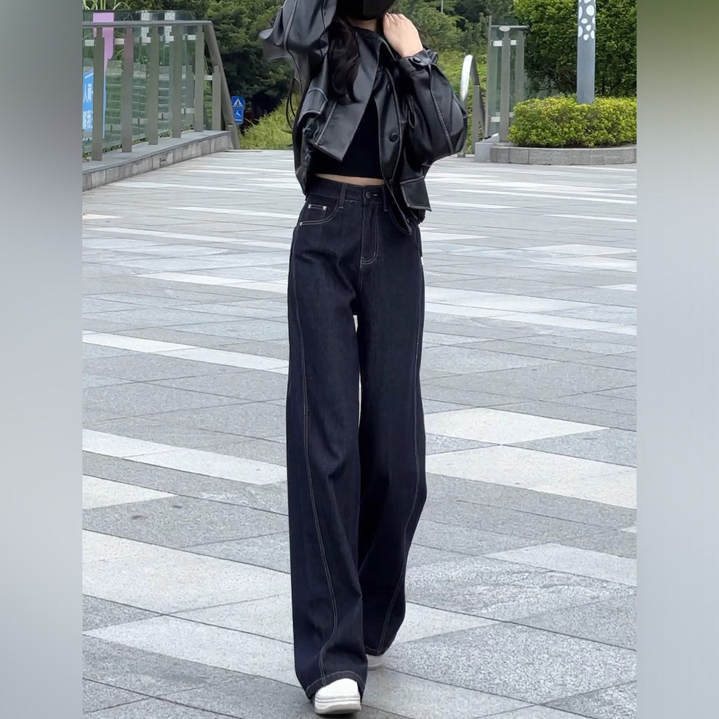 YIKOwow 开年发财裤!直筒窄版阔腿牛仔裤女春季显瘦显腿细直长裤