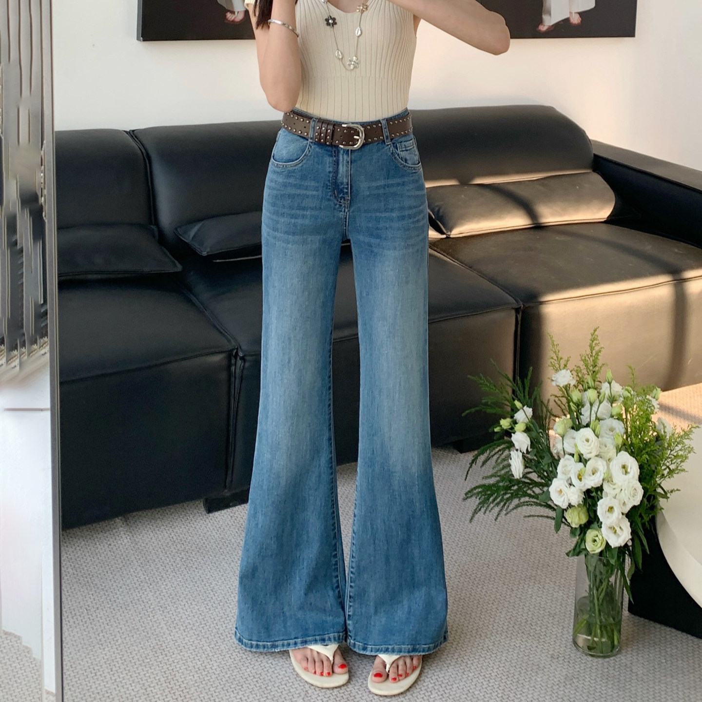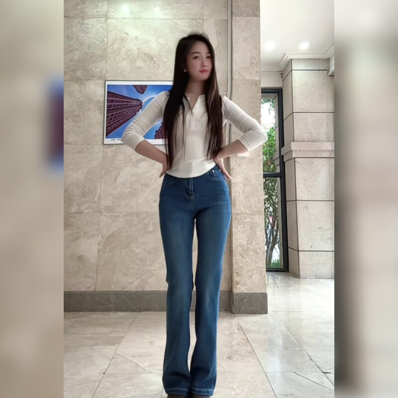- 高腰牛仔裤女微喇长裤