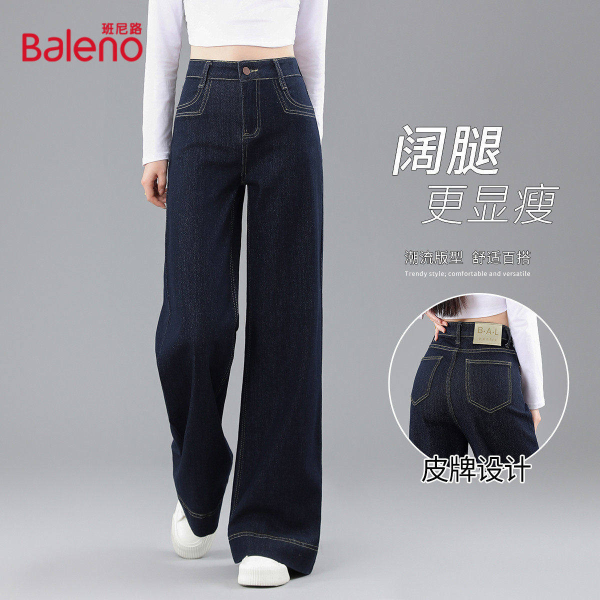 班尼路高腰牛仔裤女春秋季潮流舒适长裤女式百搭宽松显瘦阔腿裤J