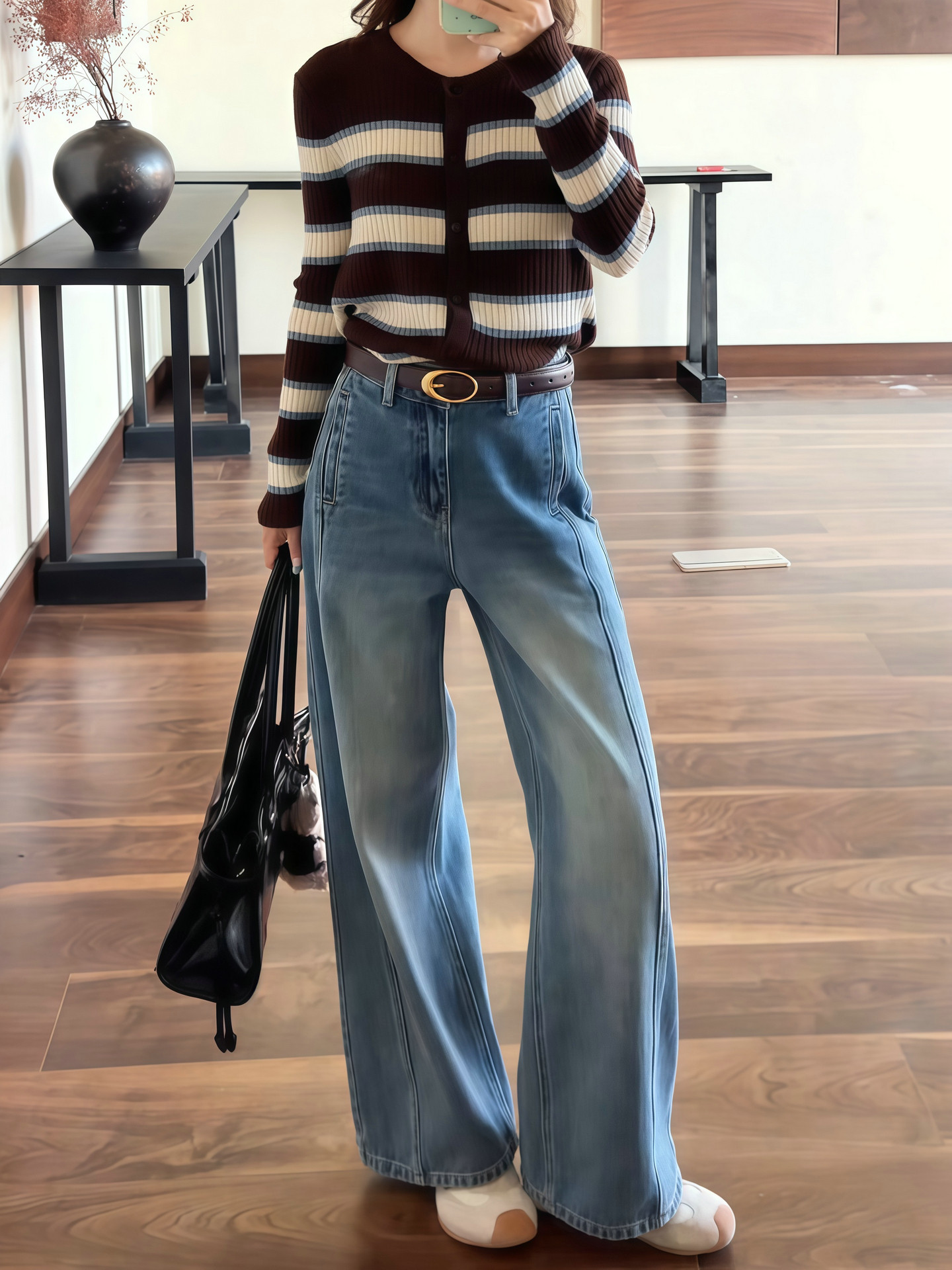 一三良品小个子 大长腿复古显瘦牛仔裤长裤拖地直筒喇叭裤女春秋