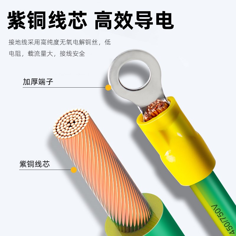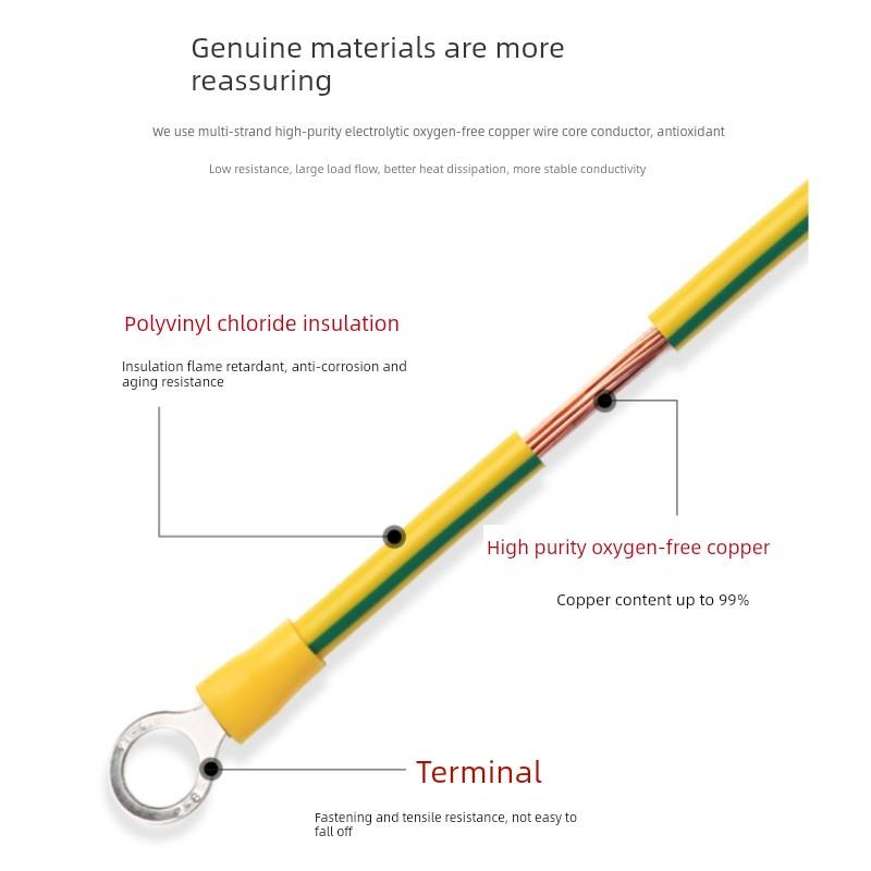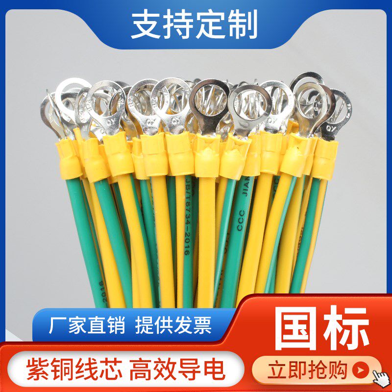 无氧紫铜黄绿双色光伏接地线桥架BVR跨接线小黄线配电箱过门组件