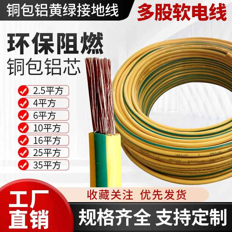 黄绿双色接地线4/6/10/16/25/35 平方多股软电线铜包铝光伏接地线