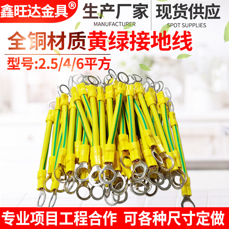 黄绿双色光伏接地线光伏板连接y线4/6平方紫铜跨接线软铜线小黄线