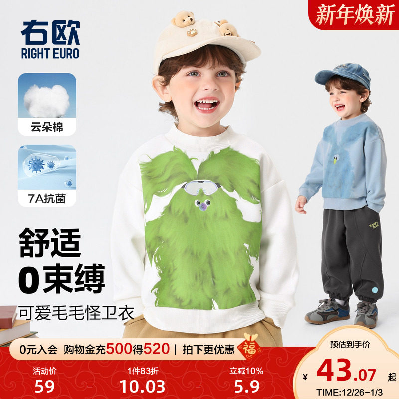 右欧男童女童卫衣可爱毛毛小怪兽春秋季新款童装卡通动漫儿童上衣