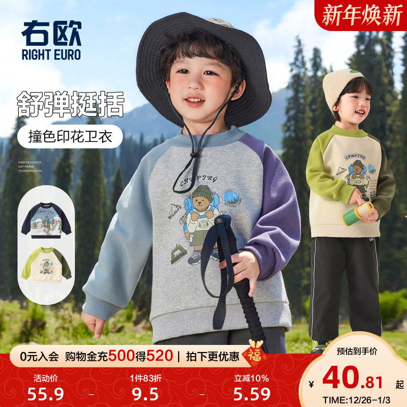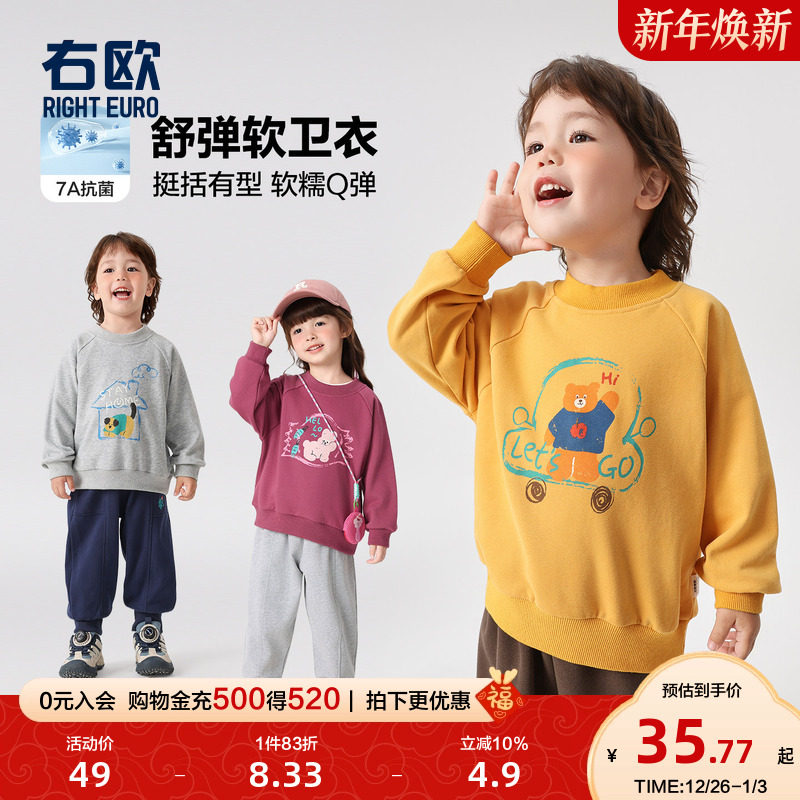 右欧男童女童卫衣洋气儿童上衣圆领卡通动漫春秋季新款多巴胺童装