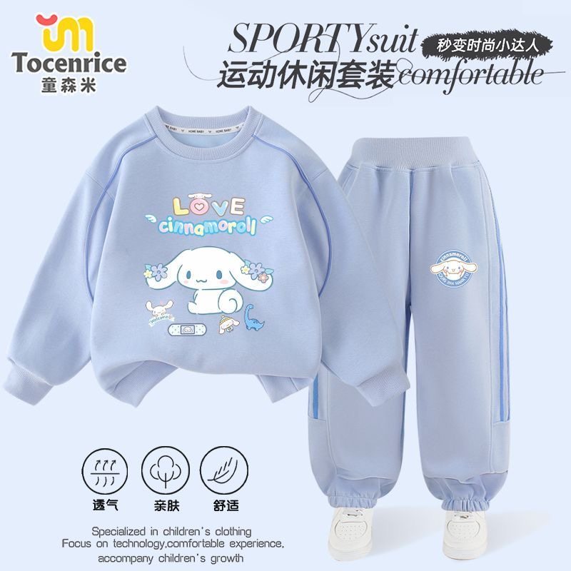 库洛米女童套装女孩卫衣直筒牛仔裤秋冬2025新款插肩加绒两件套装