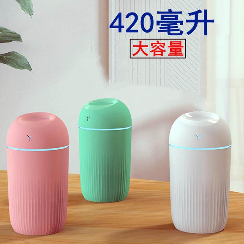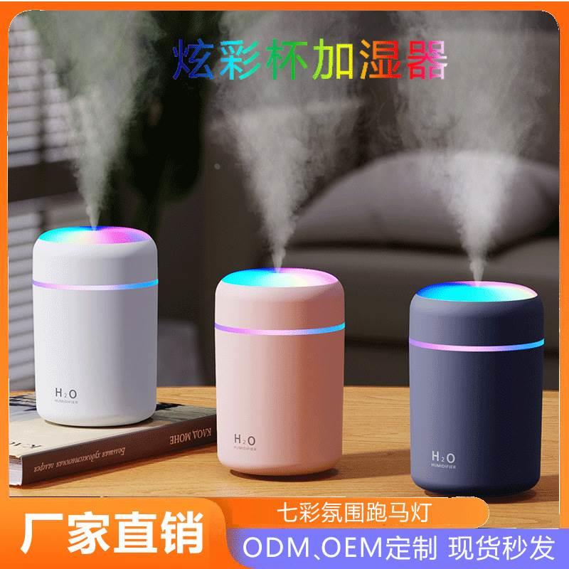 定制新款车载加湿器320毫升桌面静音喷雾七彩夜灯家用香薰加湿器