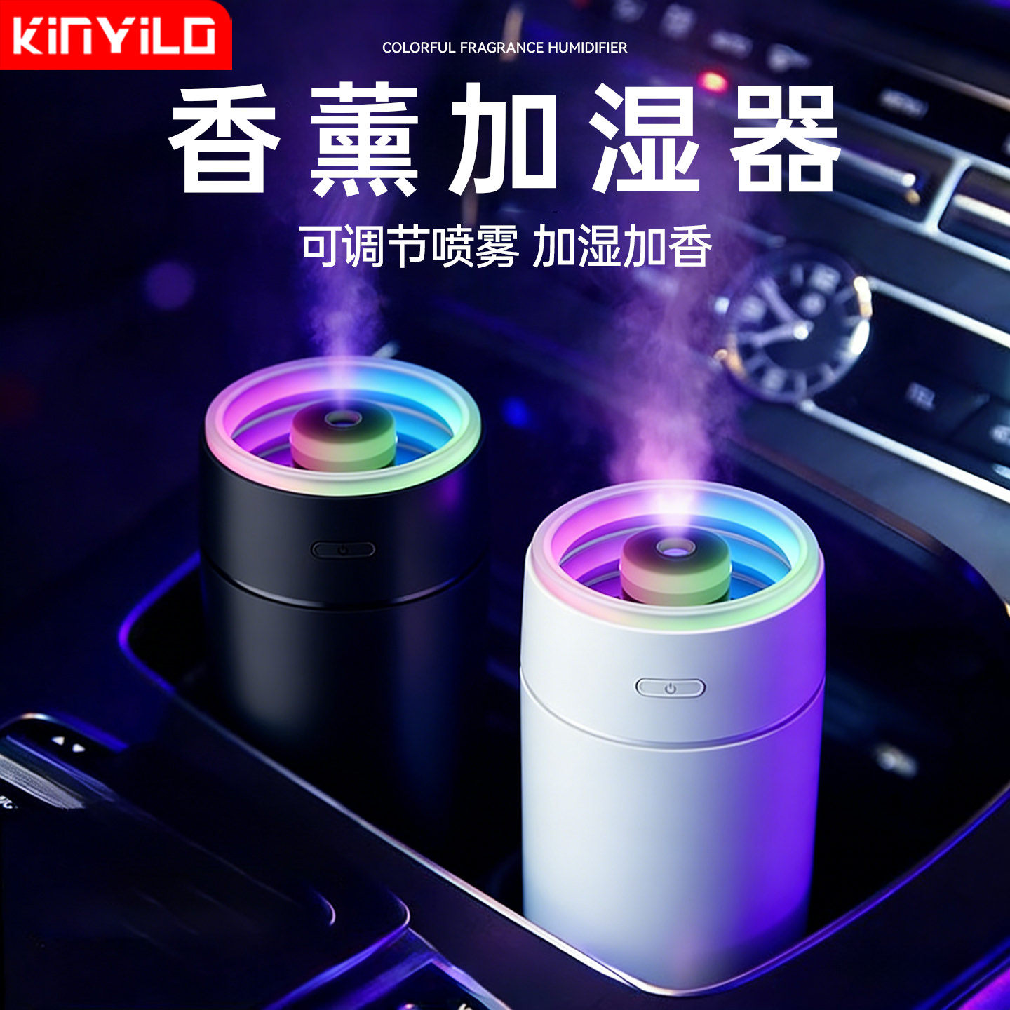 智能车载加湿器空气净化器香薰精油车内除异味汽车氛围灯香水氧吧