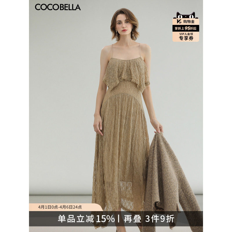 COCOBELLA轻奢蕾丝镂空吊带裙长裙女优雅不规则大摆连衣裙FR3231
