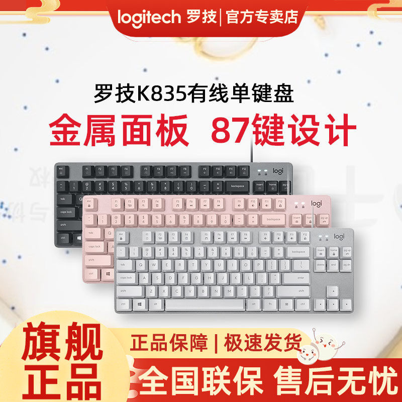 罗技K835有线真机械键盘办公游戏87键键帽TTC青轴红轴茶轴