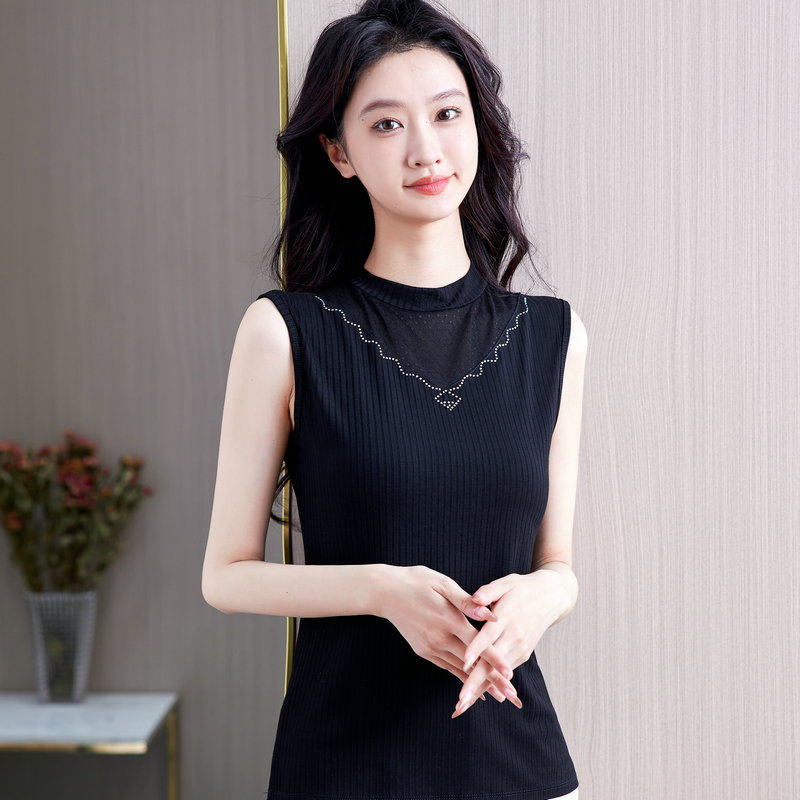 2025秋季新款半高领无袖打底衫女修身镂空内搭莫代尔立领纯色背心