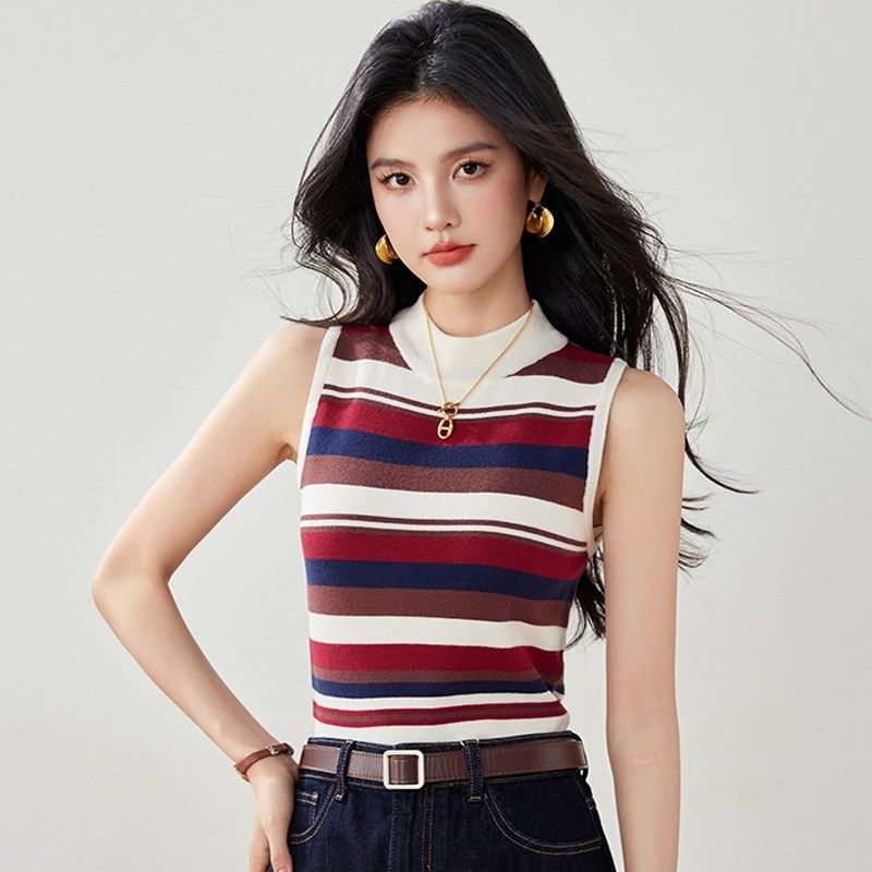 针织吊带背心女2024春季新款羊毛修身西装内搭半高领无袖打底衫