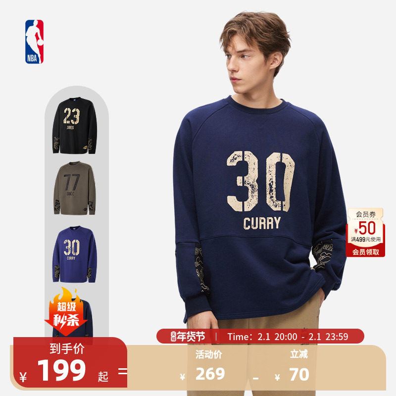 NBA官方正品库里/詹姆斯秋冬新款拼接复古运动休闲男生秋冬卫衣