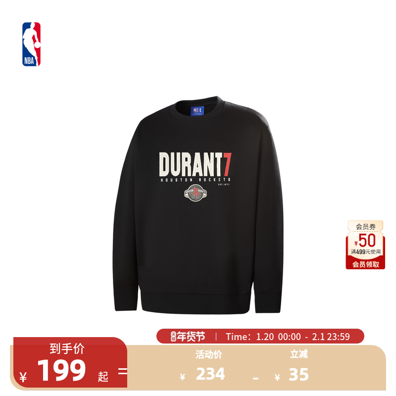 NBA官方正品库里/东契奇/杨瀚森/杜兰特秋冬新款男女圆领运动卫衣
