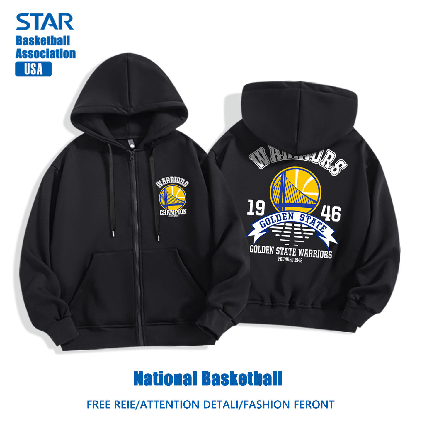 勇士队库里美式篮球服青少年男款衣服长袖帽子球衣卫衣男拉链外套