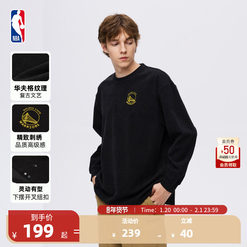 NBA官方正品库里/詹姆斯/东契奇华夫格刺绣运动加厚保暖长袖卫衣