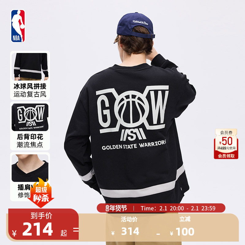 NBA官方库里/詹姆斯/杨瀚森街头篮球复古冰球风男女同款圆领卫衣