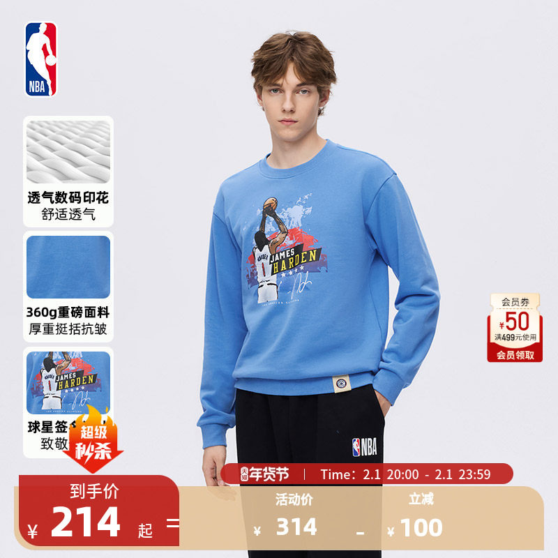NBA官方正品球场生活系列库里/哈登/东契奇秋冬新款男士保暖卫衣