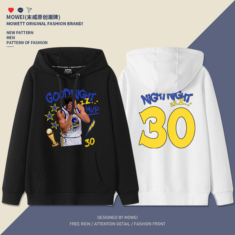 勇士队总冠军库里30晚安连帽卫衣美式投篮球运动外套加绒宽松上衣