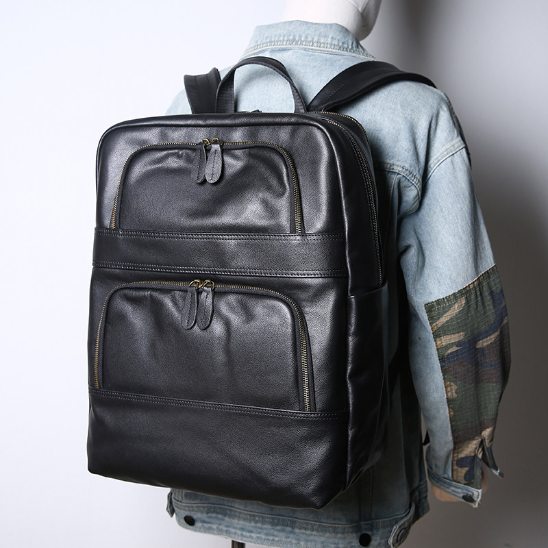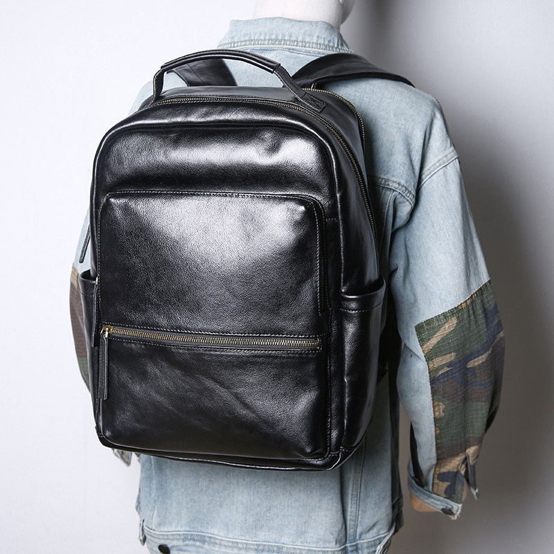 慢时光原创真皮双肩包男商务休闲头层牛皮电脑包真皮出差旅行背包