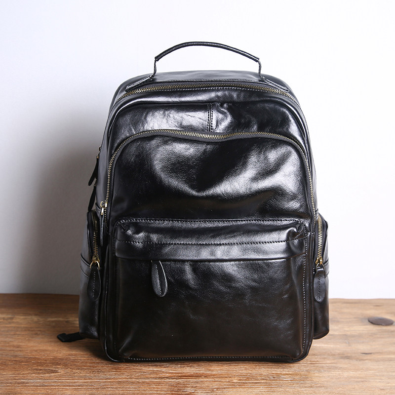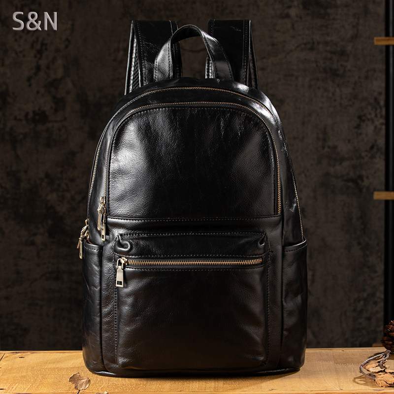 古造复古油蜡皮双肩包男真皮背包头层牛皮书包休闲简约旅行电脑包