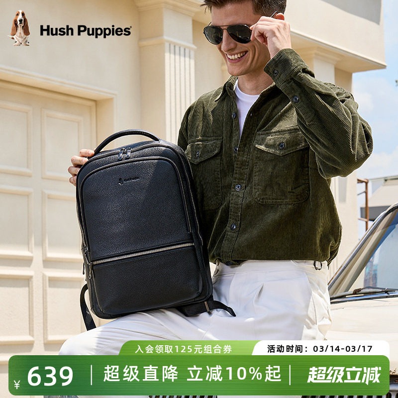 暇步士真皮双肩包男士简约商务大容量背包15.6英寸新款通勤电脑包