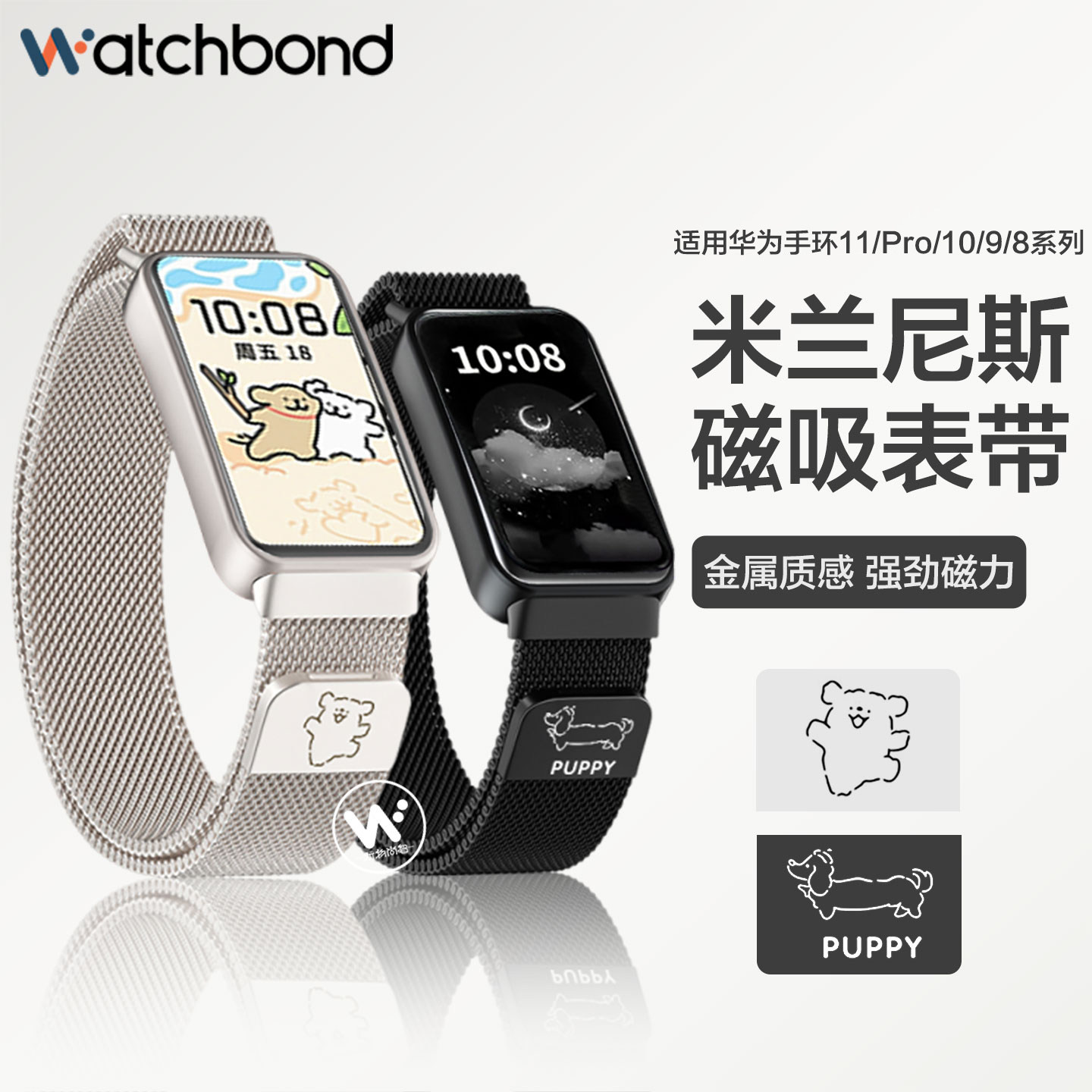 适用华为手环11新款11pro手环10表带9米兰磁吸金属腕表带8运动NFC智能女生夏天线条狗表链透气卡通腊肠狗春夏