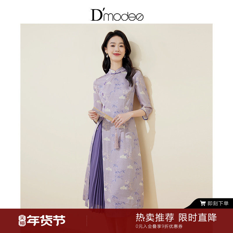 - 奥黛旗袍连衣裙