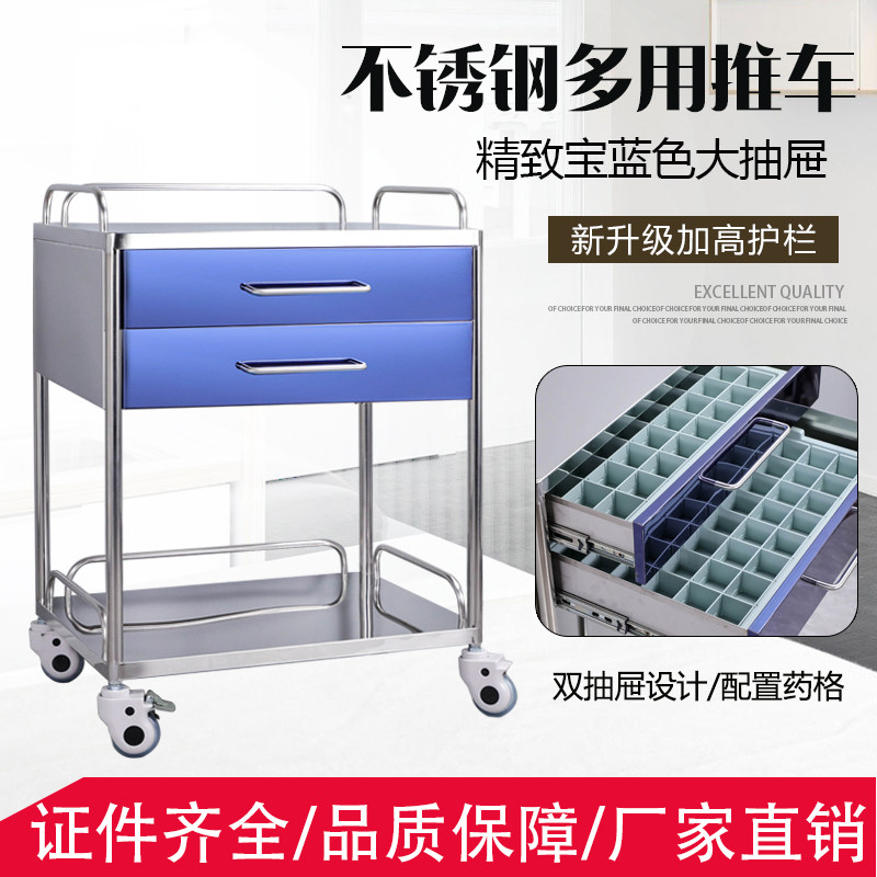 特厚304不锈h钢医用推车置物架手推工具治疗车美容护理医院小推车