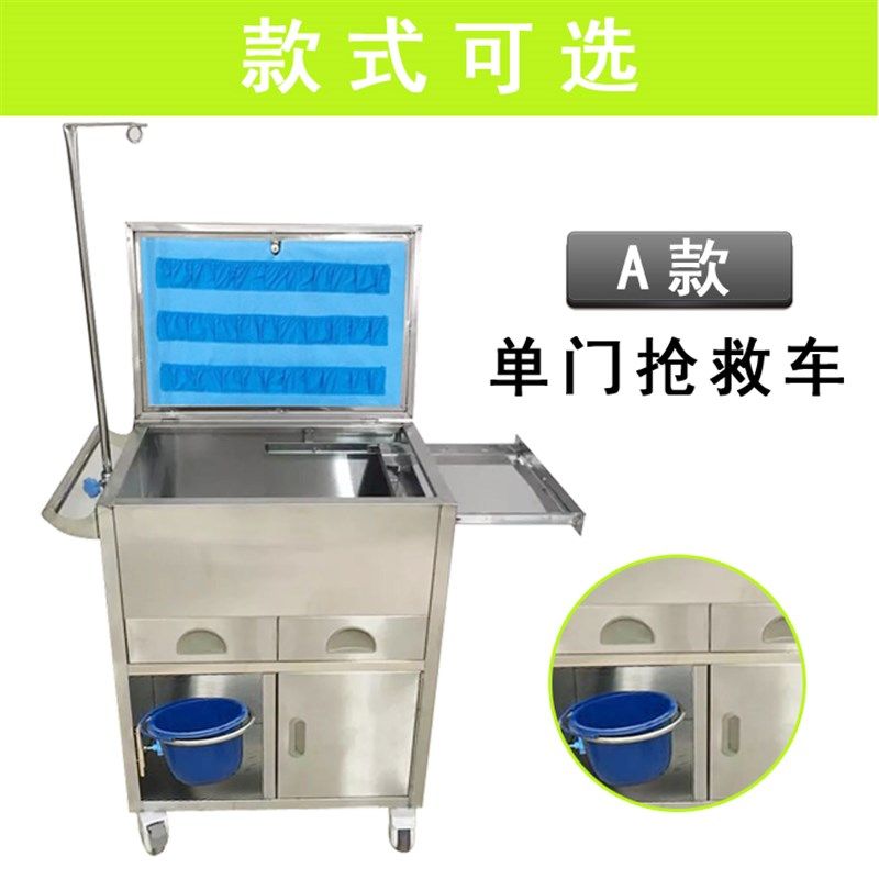医院不锈钢抢救车多功能ABS医疗麻醉翻盖药品急救车医用推车加厚