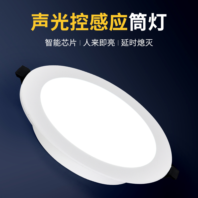 led智能声控人体感应筒灯嵌入式家用走廊过道酒店楼梯声光控物业