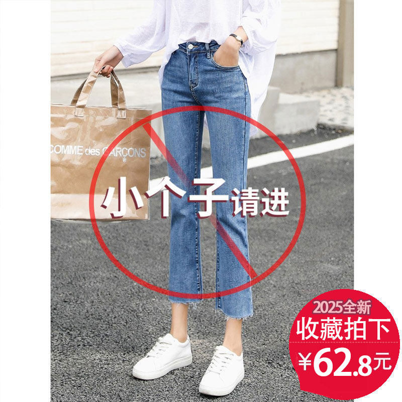 不贴腿微宽松八分小个子直筒牛仔裤女士秋冬款显瘦弹力九分喇叭裤