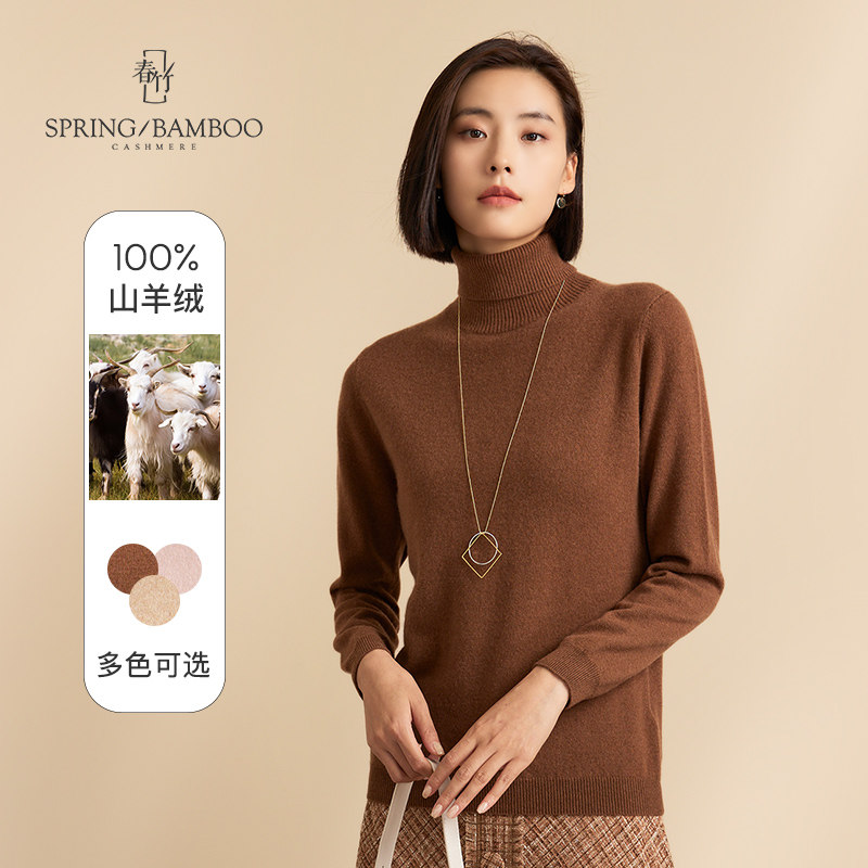 春竹羊绒衫女高领半高领100%山羊绒针织打底衫长袖保暖毛衣女