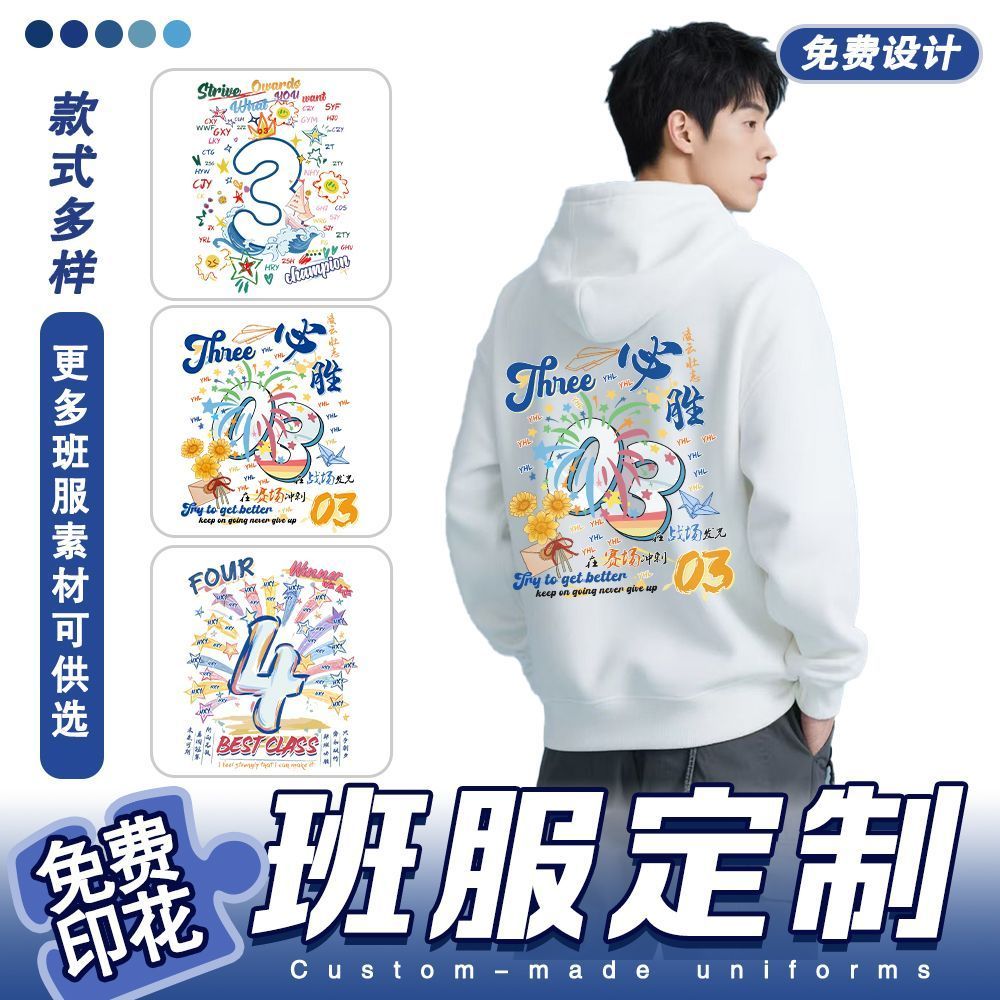 班服卫衣定制初高中大学生运动会秋冬长袖上衣diy连帽外套印logo