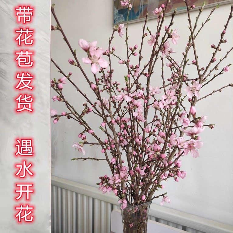 桃花枝遇水开花花卉家用客厅新鲜桃枝条现剪桃树真花泡水干枝桃花