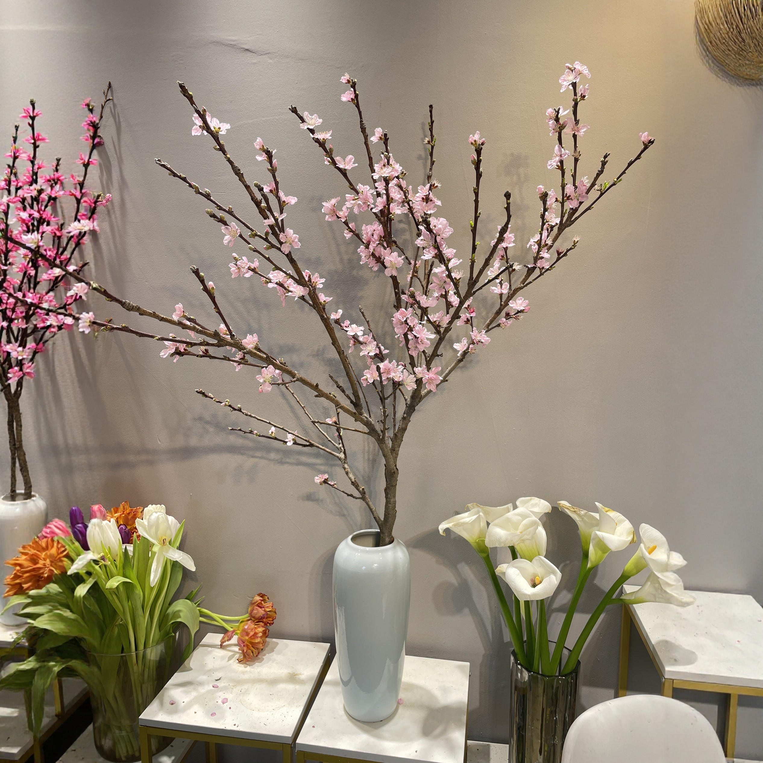 仿真桃花枝梅花枝樱花枝室内客厅摆放花艺假树造景工程装饰塑料花