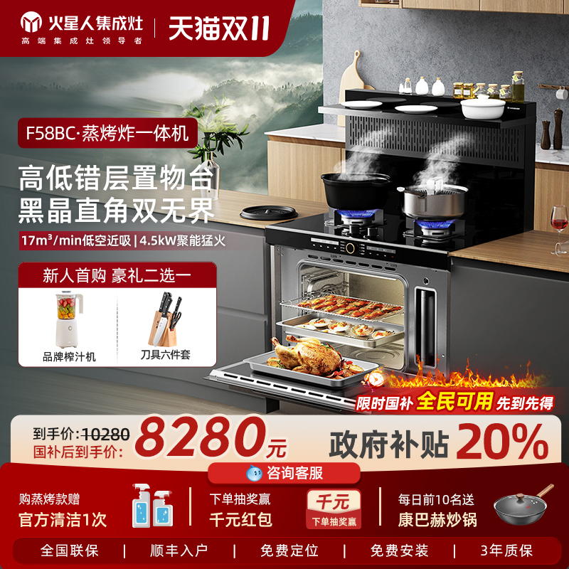 火星人集成灶F58BC蒸烤箱一体机集体灶家用灶具油烟机官方旗舰店