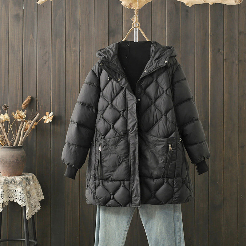 2025冬季女中长款连帽女士加肥加大棉服女士秋冬潮流外套8817