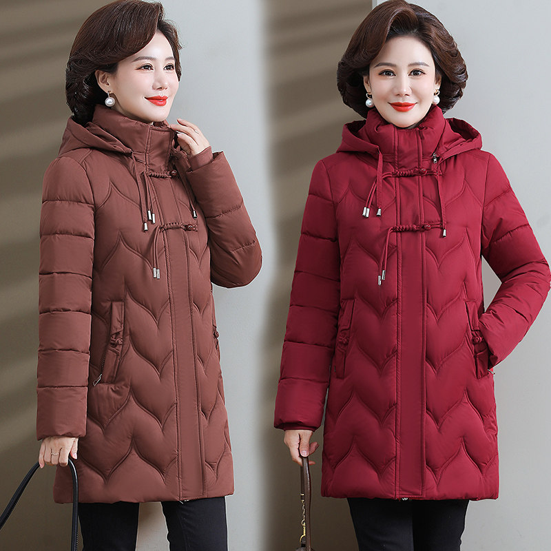 中年妈妈修身显瘦加厚过膝羽绒棉服中老年棉衣女中长款加肥加大码