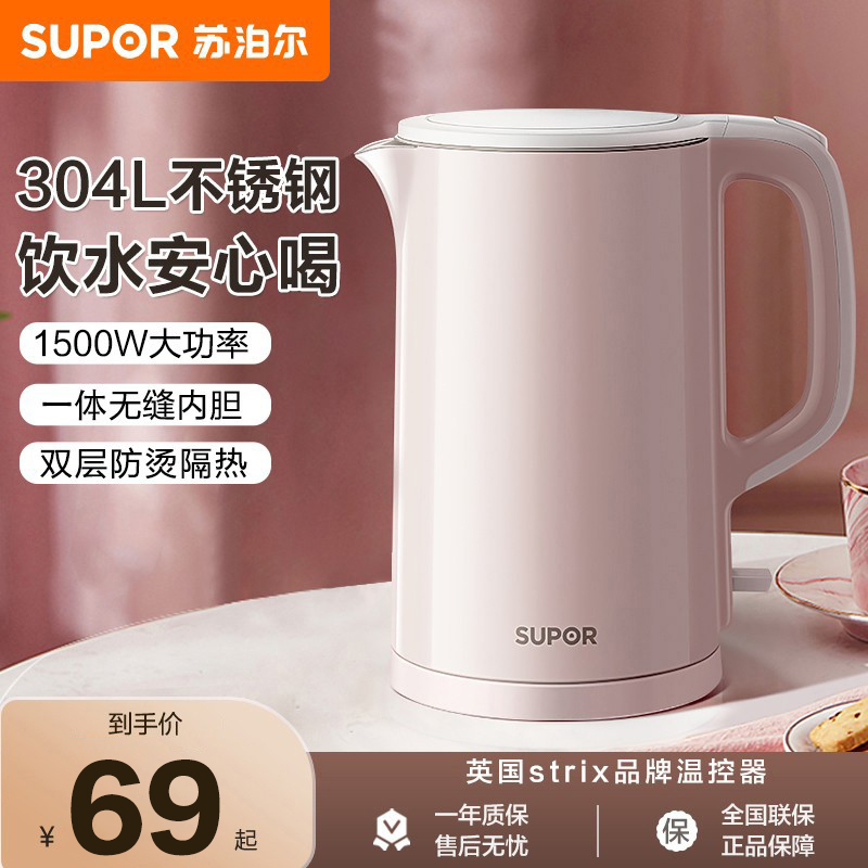 苏泊尔电热水壶家用烧水壶自动断电泡茶煮水304不锈钢保温开水壶